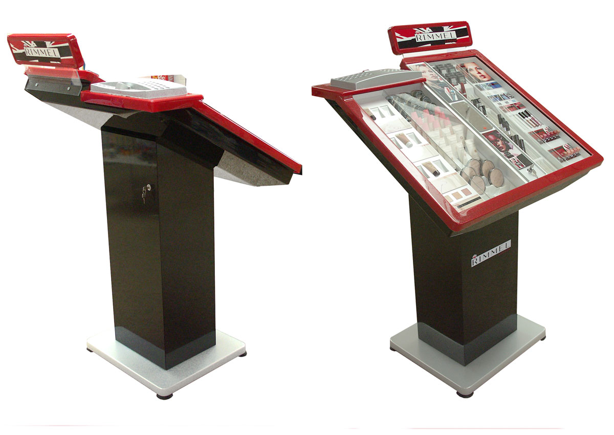 Product trays, position and graphics changeable. Additional version for Eastern Europe with storage room, thief protection and promotional area.