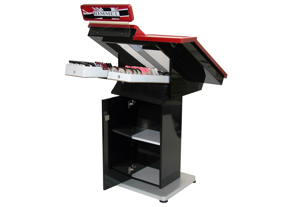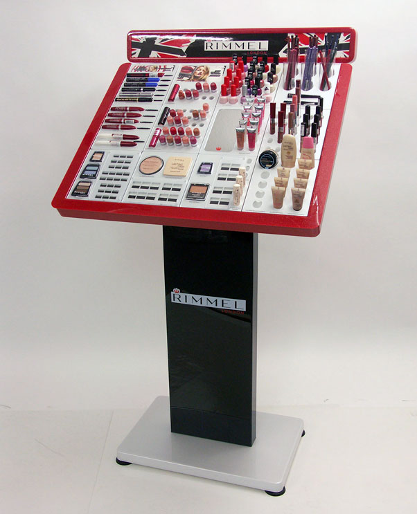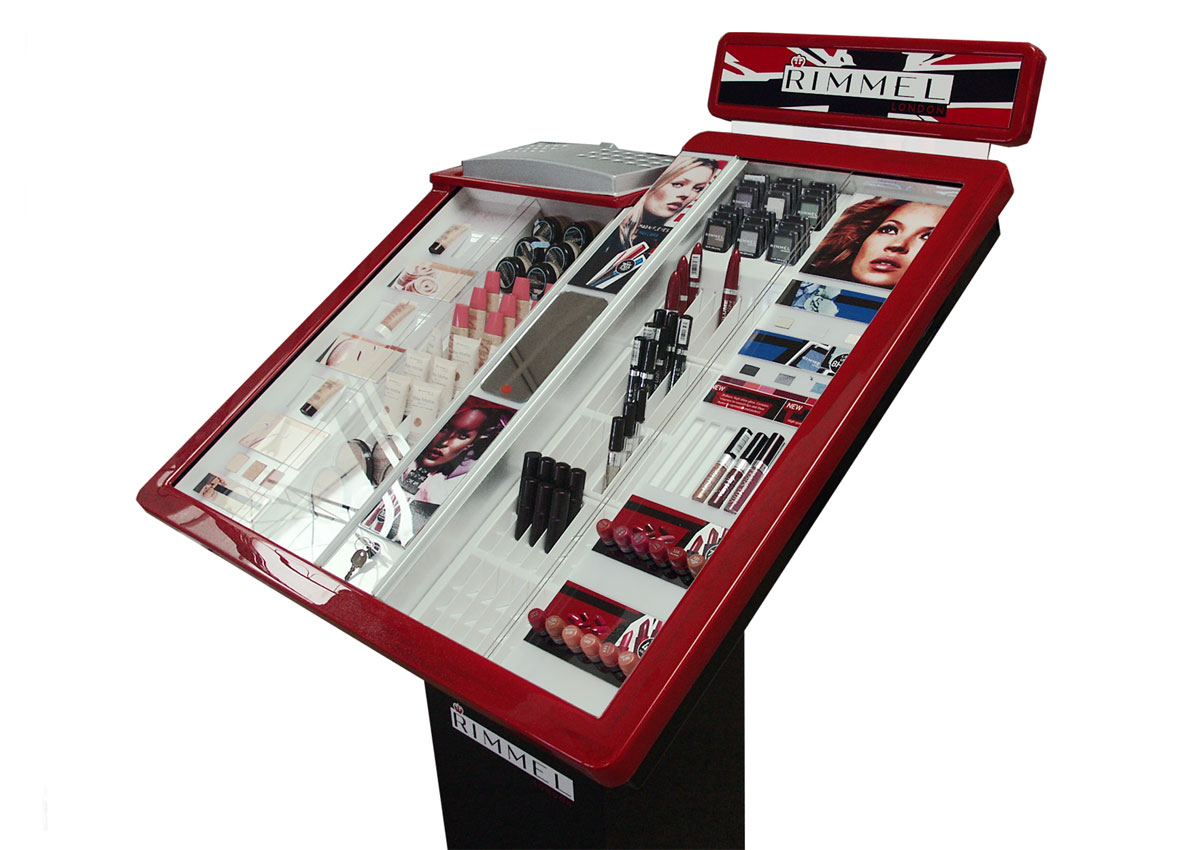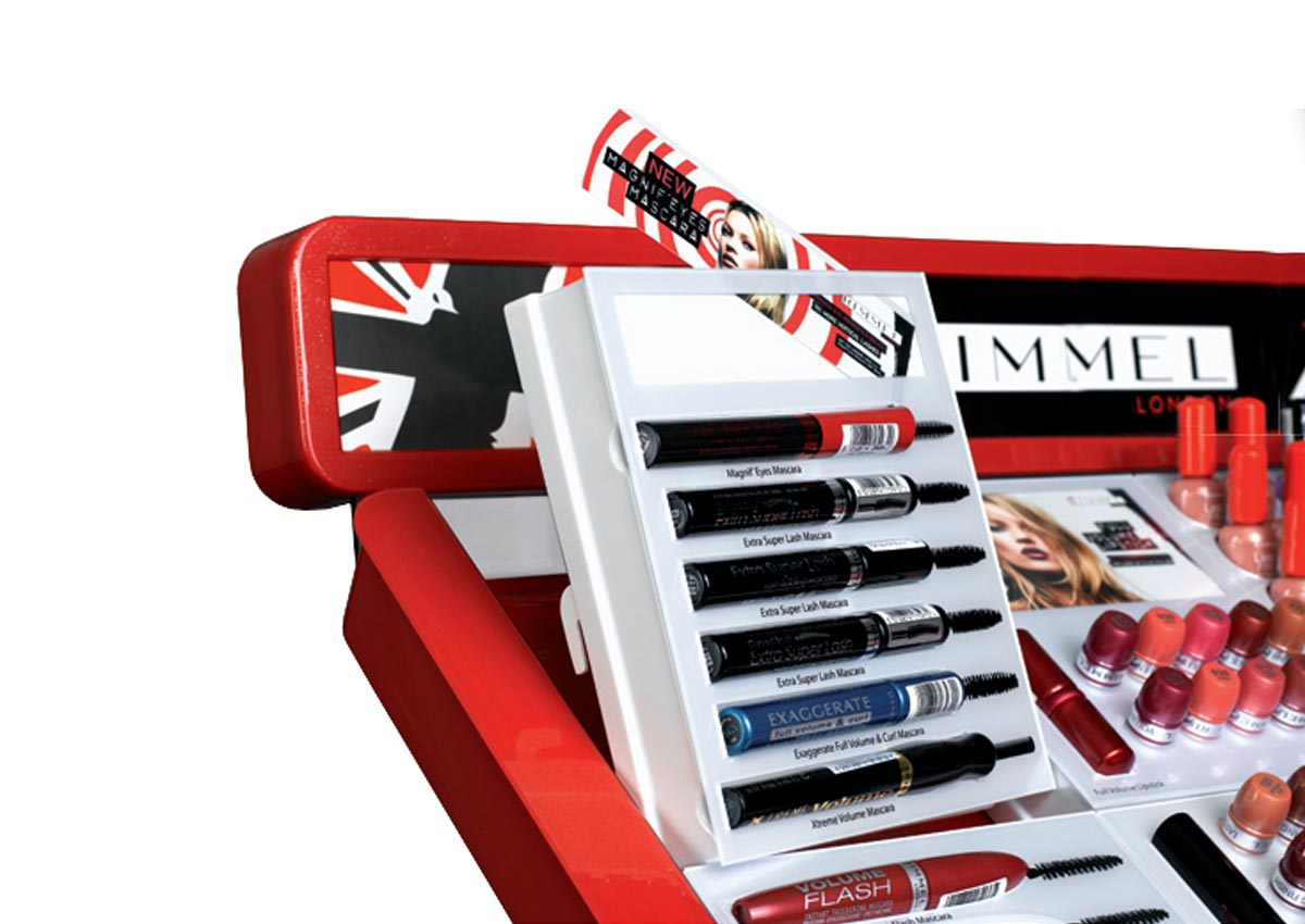 FSU designed and developed for Coty/ Rimmel. Dual-use as free standing unit or place on counter.